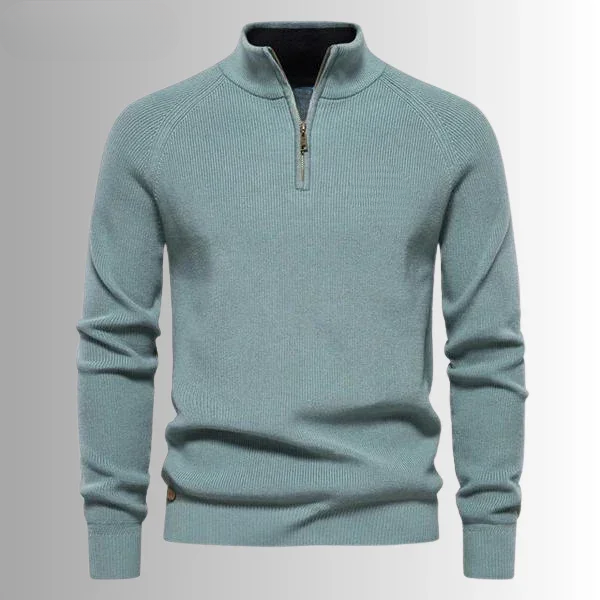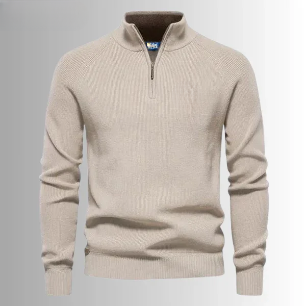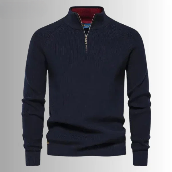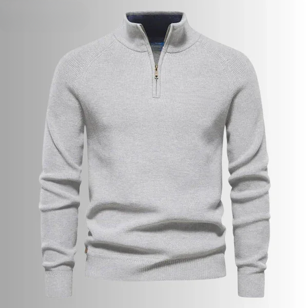 Dikke warm gebreide herentrui with rits en opstaande kraag
